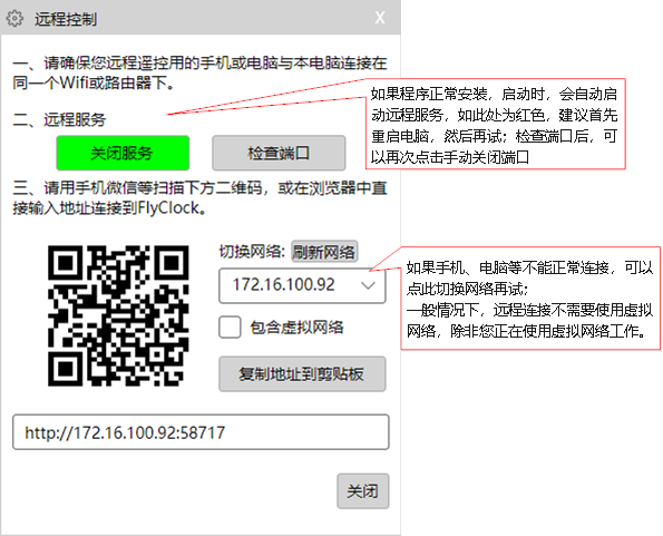 2、远程遥控可能通过手机、平板或其它电脑实现,但基本前提是这些设备能够与运行FlyClock的电脑在同一网络,例如,它们通过同一个Wifi上网。