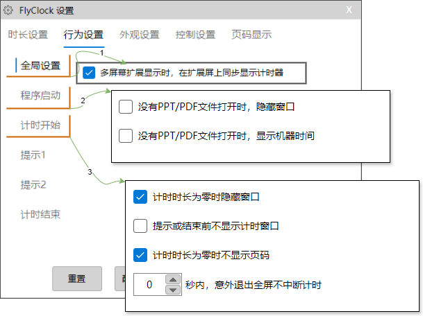 从软件启动,到开始计时,然后到计时快结束、将要结束,最后到计时时间到,每个阶段,我们都会对计时器的动作行为有所要求,这里就是设置的地方。