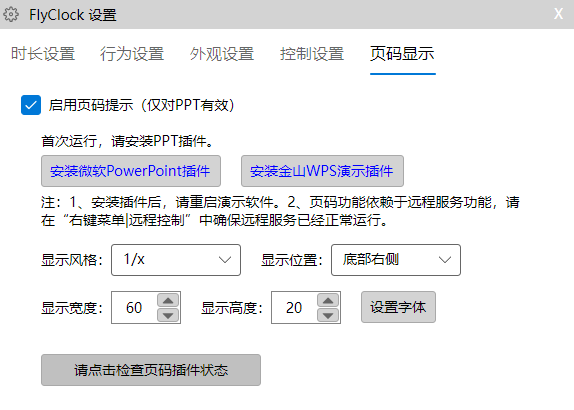 注意,页码显示插件对于单页计时、远程操作文档是必须的,如果不安装插件,这些功能将不会运行。